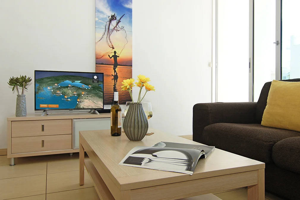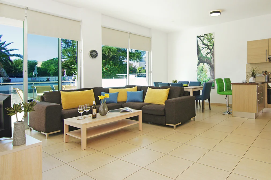 - With the large open plan living area, balcony and flat screen TV, there’s plenty to keep the whole family entertained.