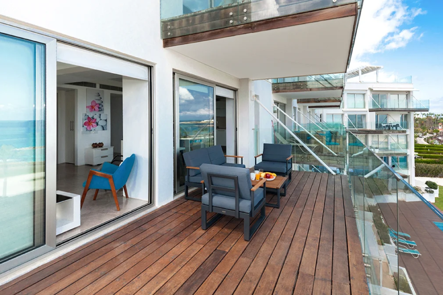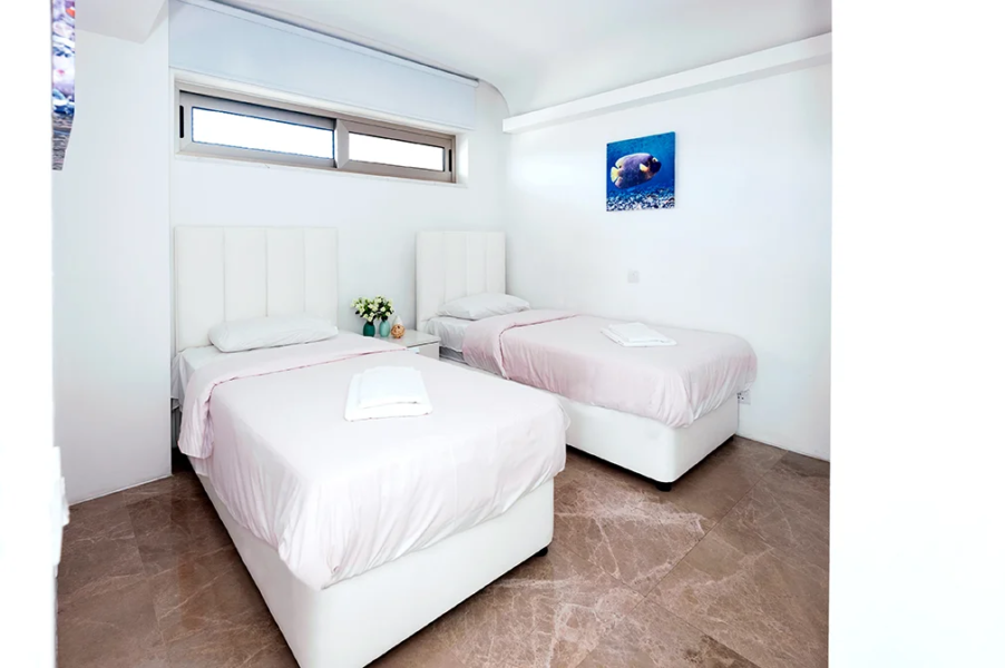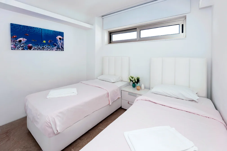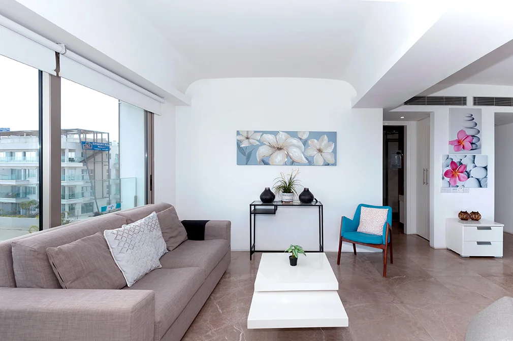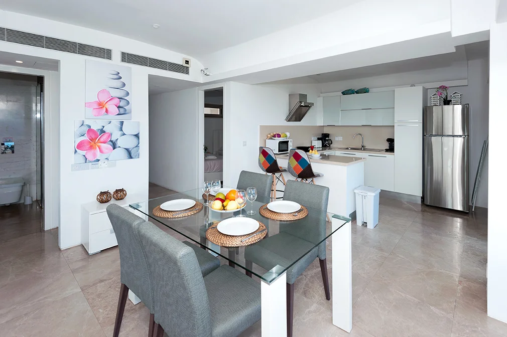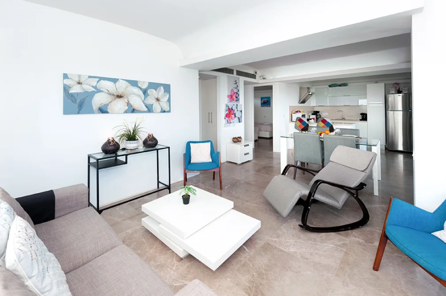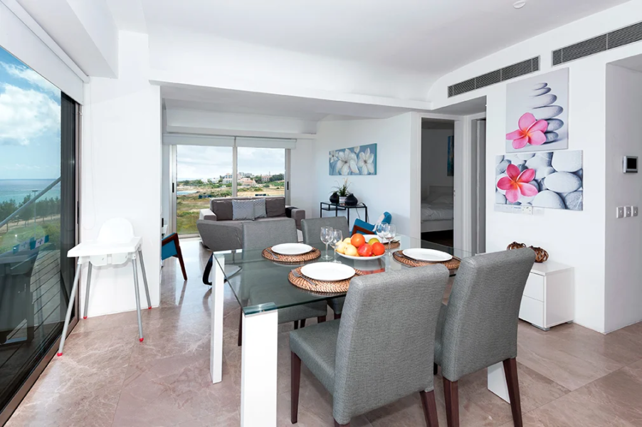- This luxurious two bedroom apartment is ideally situated in a brand new gated sea front resort 50 metres from the beach and close to the centre of Protaras.