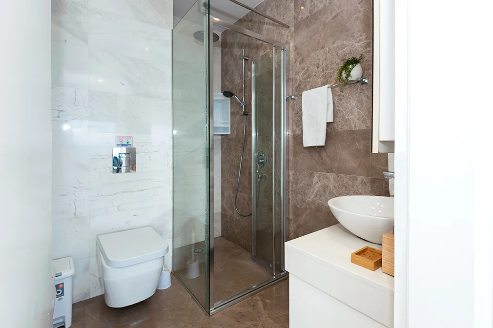 1 bathroom with toilet and walk-in shower room