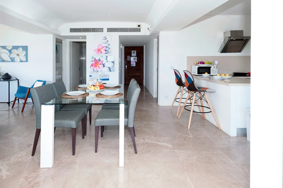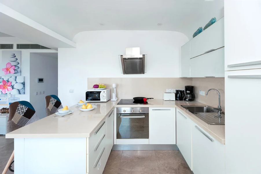 - Contemporary designed, it consists of open plan living area with panoramic sea view which includes kitchen, sitting and dining areas, and opens to a balcony, the master bedroom, twin bedroom and bathroom with walk-in shower room.