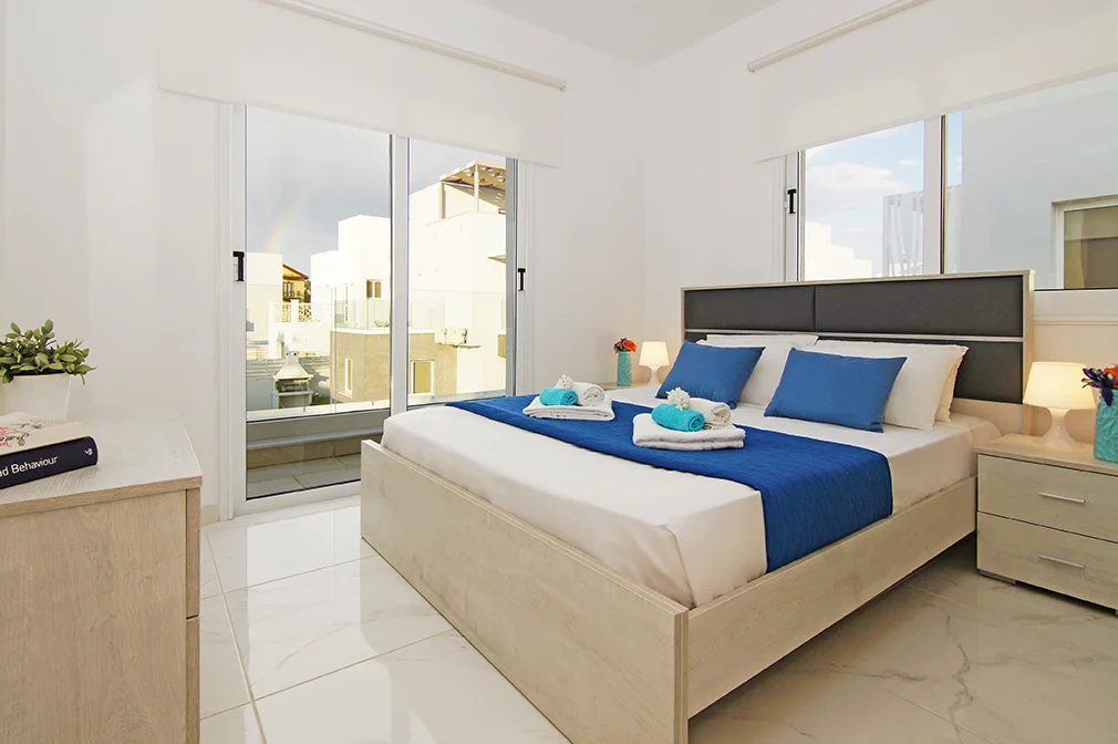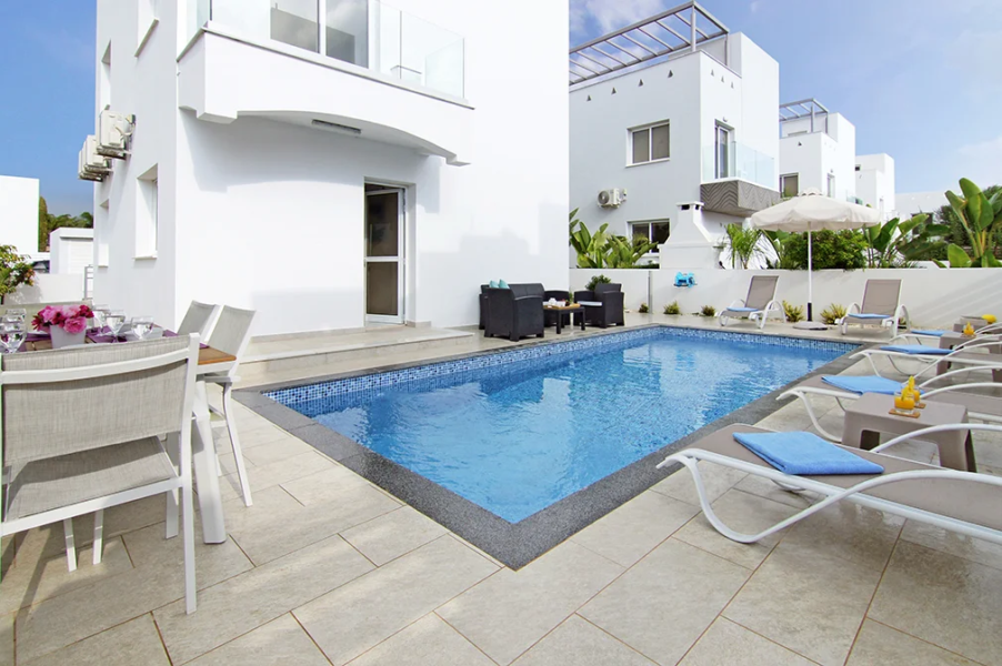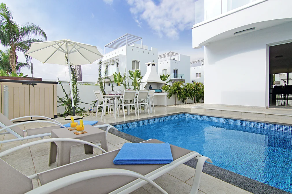 - This gorgeous brand new villa, designed with attention to detail, is located in the heart of Ayia Napa and only 500 metres from Sandy Bay Beach.