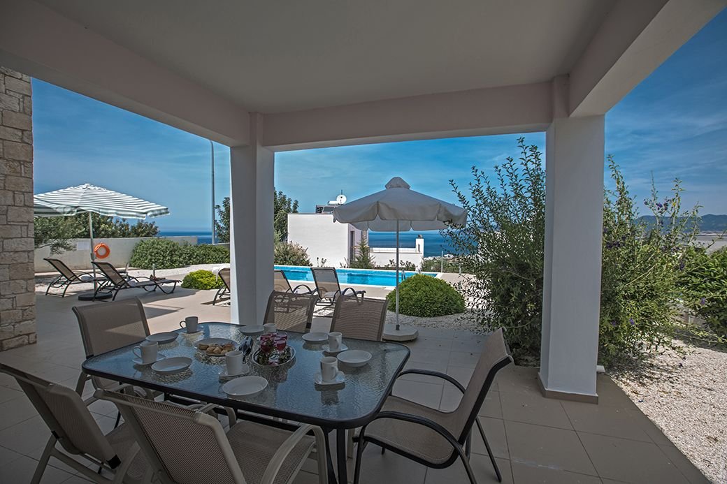 Outside the villa you will find a spacious and sunny garden area with 8m x 4m private pool with plenty of space for sunbathing and outside dining and a variety of plants and trees.