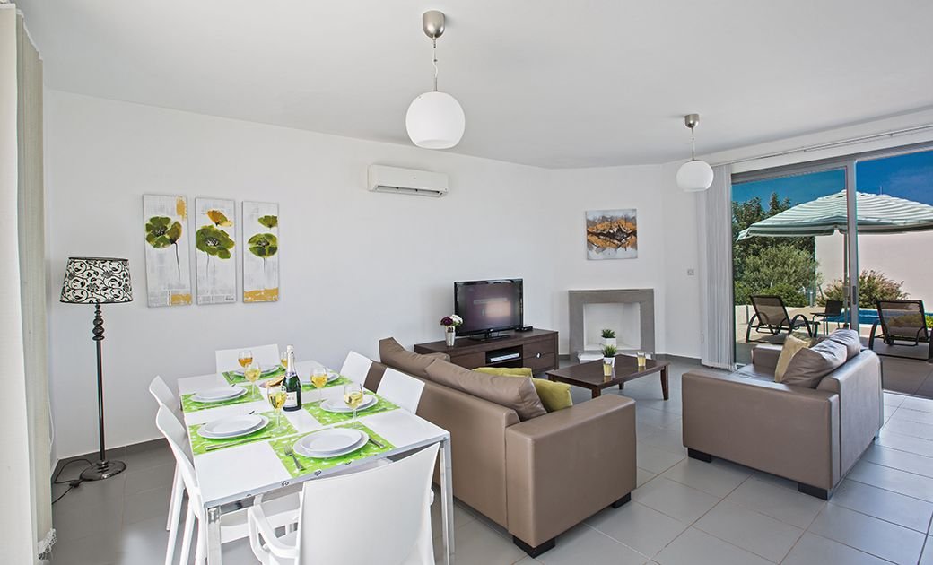 The villa is modernly furnished to a high standard with furnishings carefully hand-picked with the help of celebrity interior designer Linda Barker and is complete with a private pool and landscaped garden.
