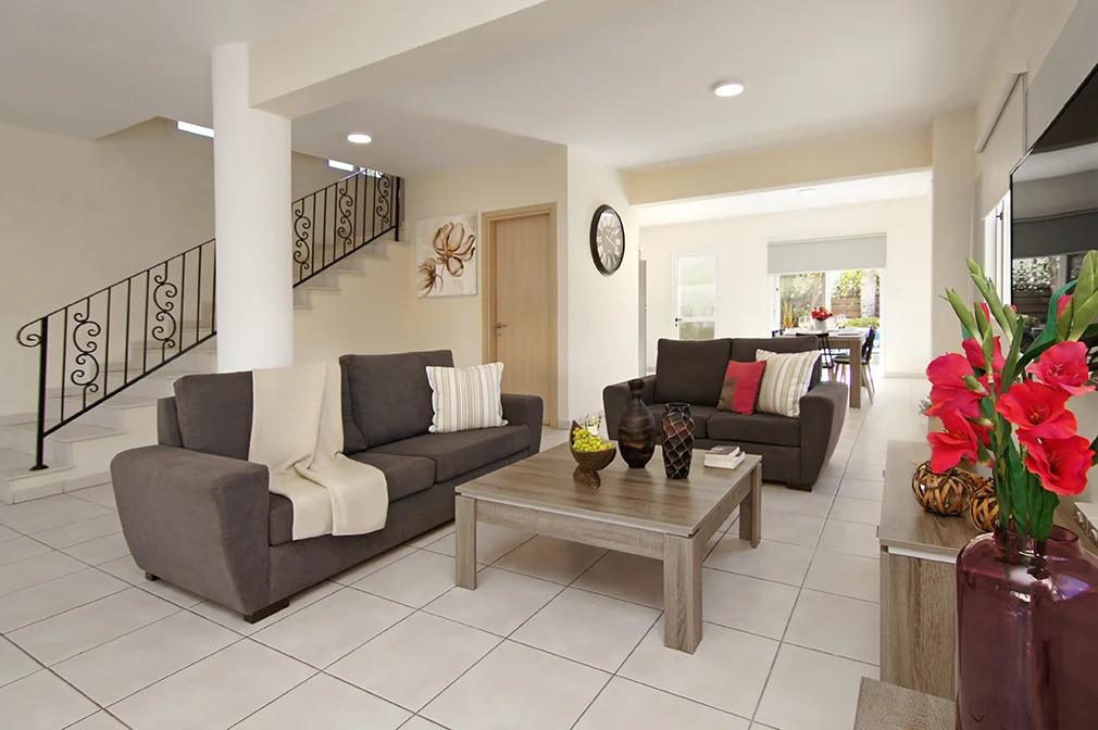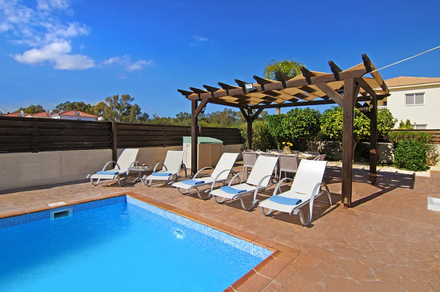 • Villas is with 2 bathrooms, 3 bedrooms magnificently furnished, flat screen TV with satellite channels, air-conditioned throughout, a large swimming pool area with garden, BBQ area and pergola.