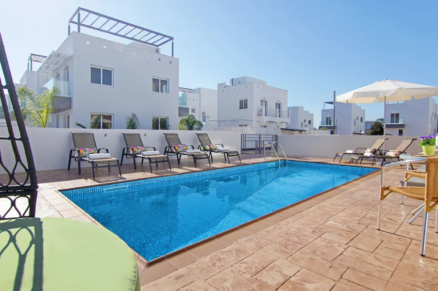 - The famous Nissi Beach is around 10 minutes walk from the villa. Until late afternoon it offers sun-drenched pool, and shady area behind the villa is ideal for al-fresco dining.