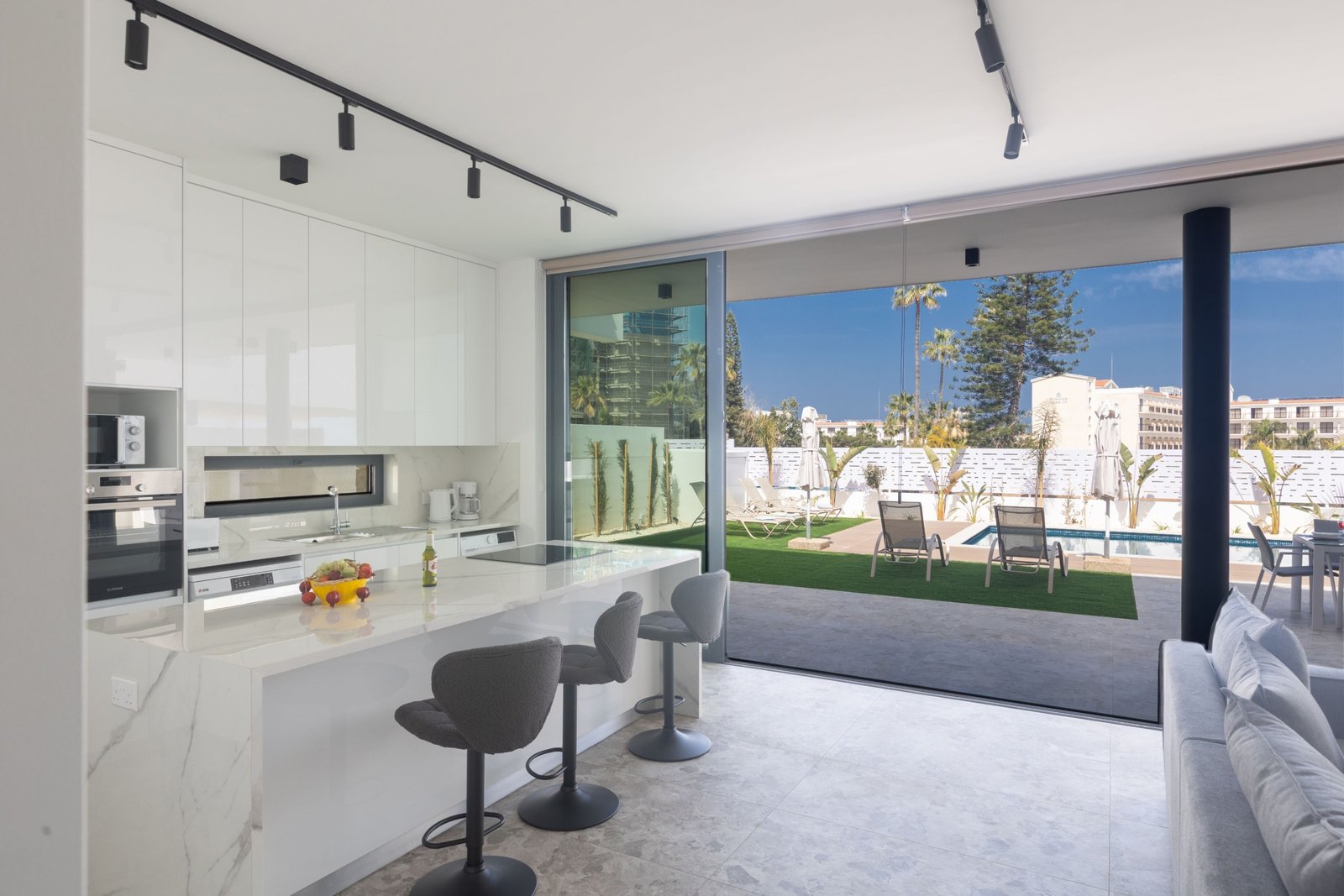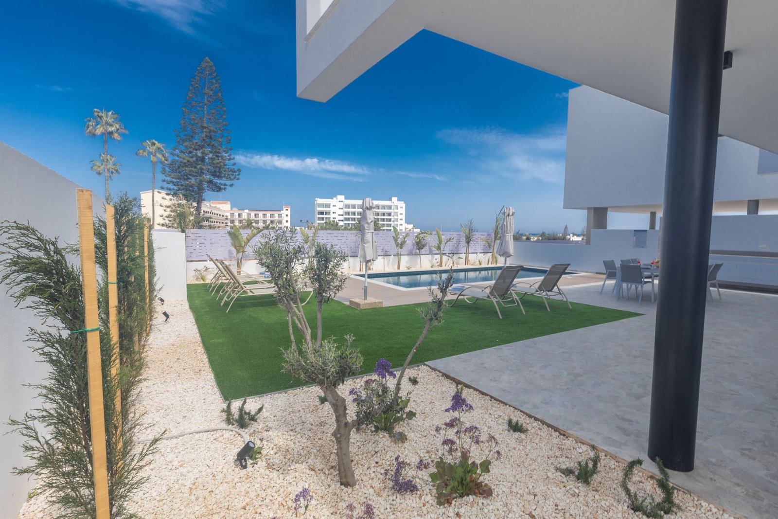 Step outside to your private outdoor pool—perfect for soaking up the Mediterranean sun. The villa also includes a stunning rooftop garden with panoramic views, providing a serene space to relax, entertain, or enjoy the sunset.