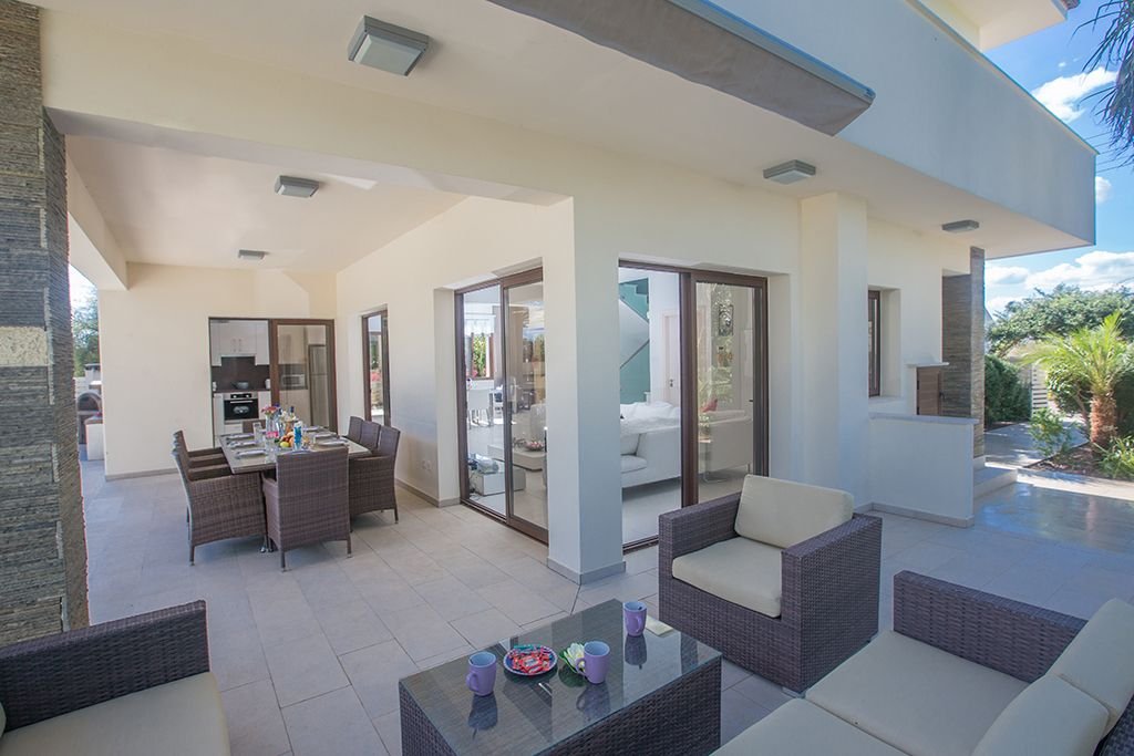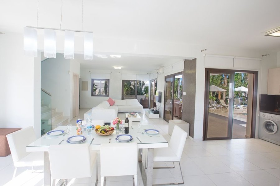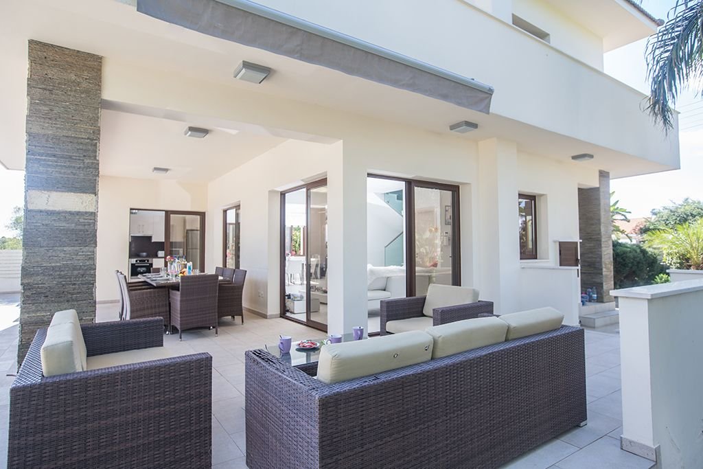 This luxurious 4 bedroom villa is located between the coastal resort areas of Protaras and Ayia Napa. Over 350 square metres in size, the villa is set out over 3 storeys with spacious rooms on each floor. The villa is furnished to a high level with many extras offered for total comfort during your stay.
