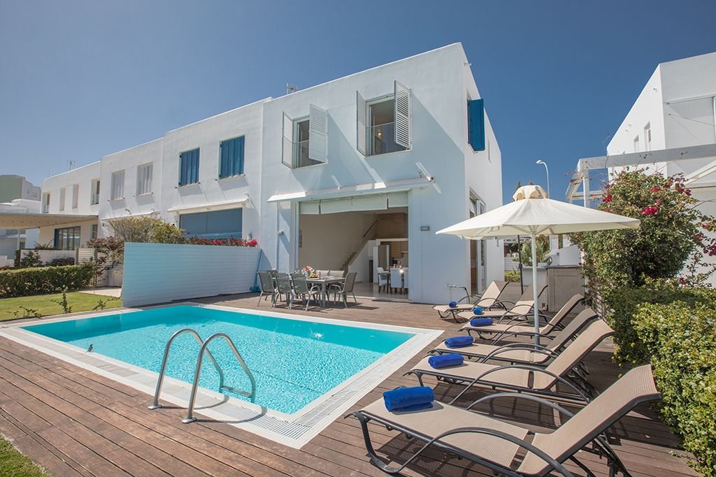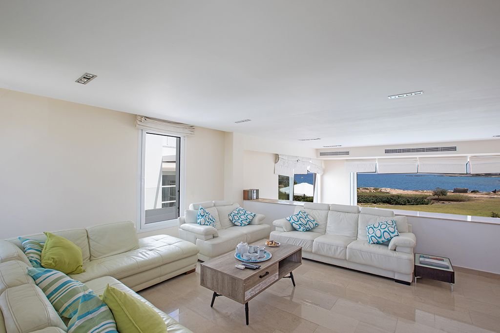 This beautiful and elegant 4 bedroom, 3 storey sea front villa is located in a quiet cul-de-sac in the heart of Protaras, just a 5 minute walk to Fig Tree Bay Beach and all amenities.
