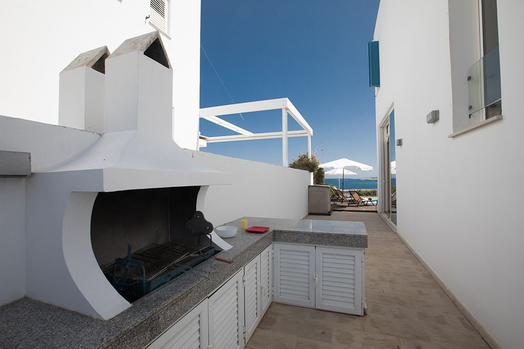 The ground floor of the villa has a large, modern, fully equipped kitchen that has a breakfast bar seating 2 persons and a dining table seating 6 persons. You will also find a large, corner leather sofa overlooking the stunning sea views.