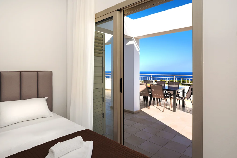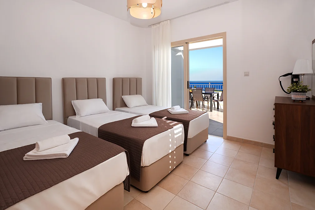 - It spreads on 3 floors with amazing en-suite master bedroom on the first floor which opens to a spacious sea view balcony. One more double bedroom is on this floor and another one twin bedroom with 3 single beds having also access to balcony with sea view.