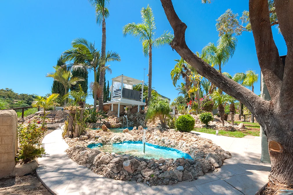 • Amazing landscaped gardens surround this villa and its swimming pool which features walk-in steps and waterfall.