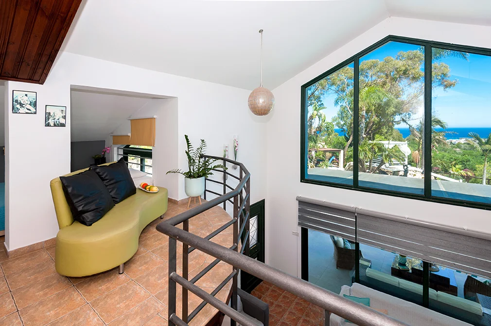 • The property is set over two levels with open space living area and en-suite bedroom on the ground level and atrium with another two bedrooms and family bathroom on the upper level.