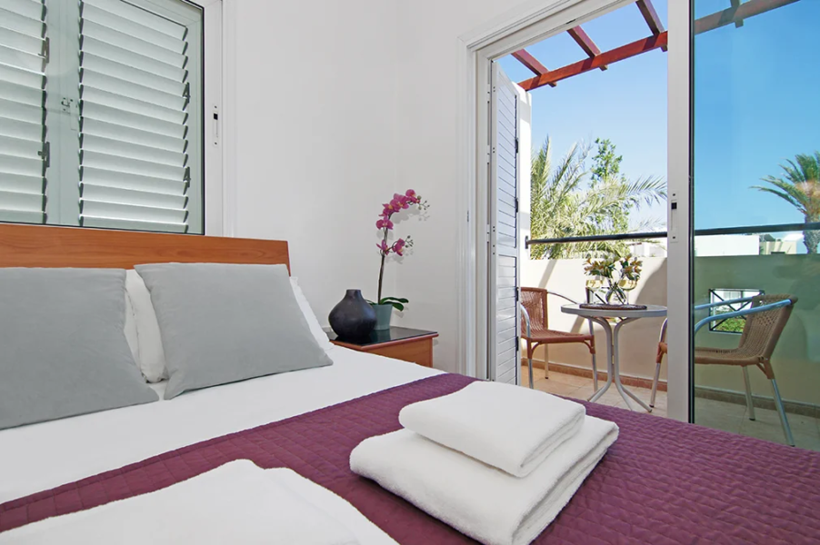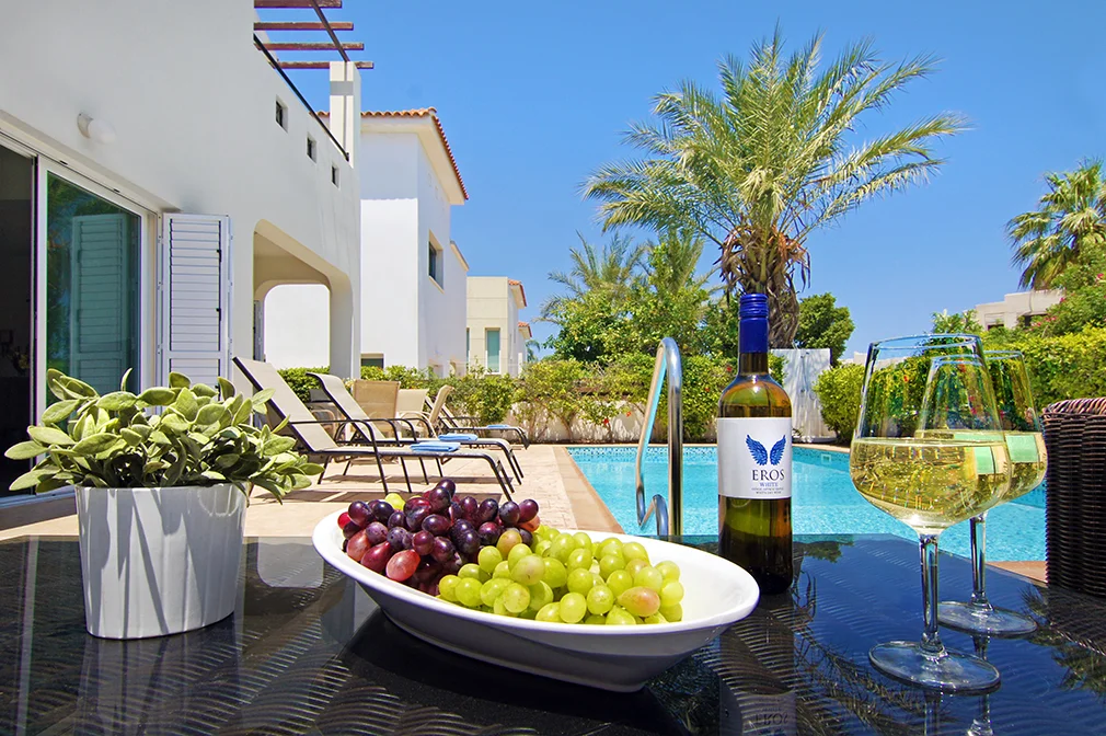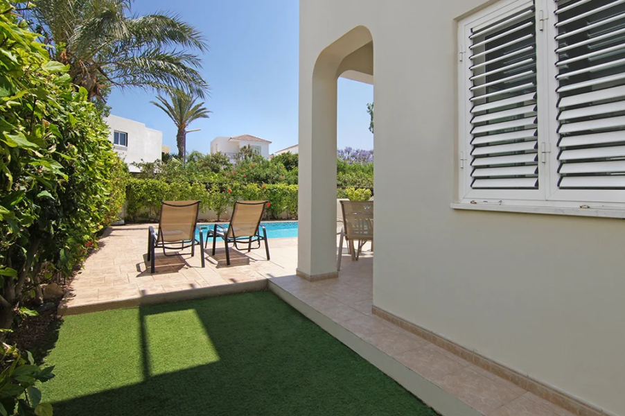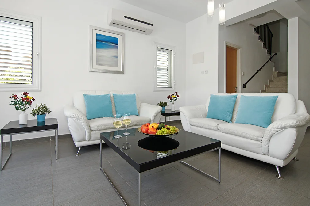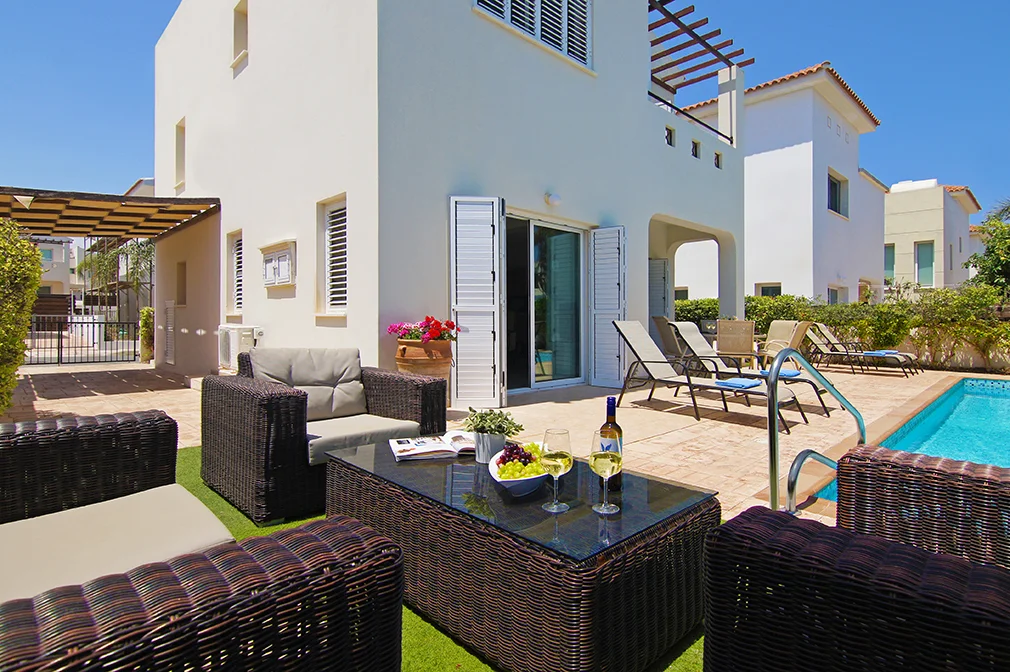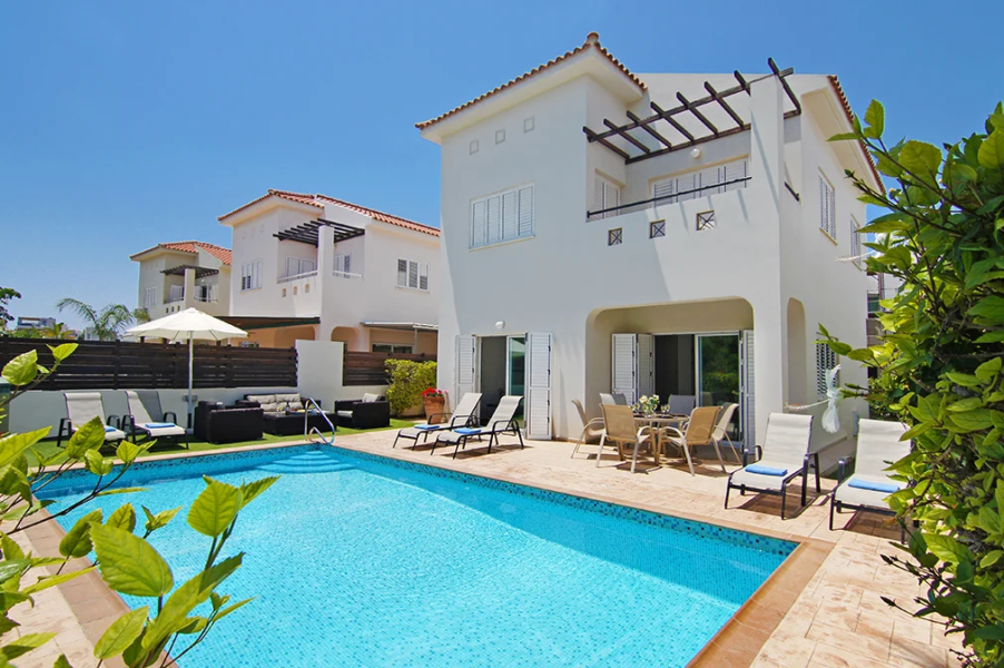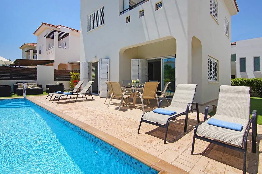 - This lovely three bedroom villa is located in the heart of Ayia Triada, only 6 minutes walk to sandy golden Trinity Beach at the small fishing shelter.
