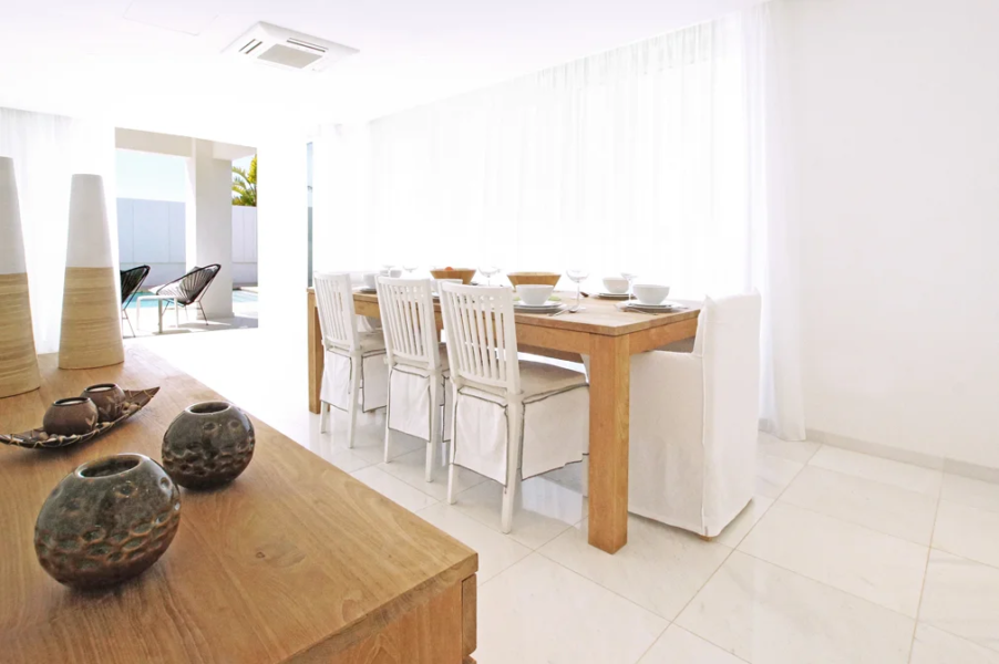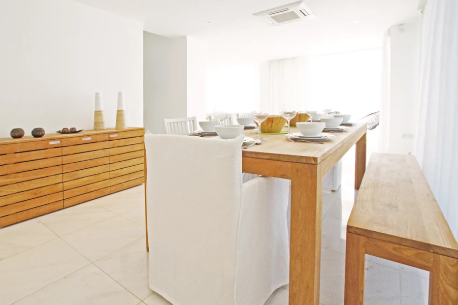 - A functional kitchen will satisfy all cooking lovers and a large wood dining table can accommodate even an extra member.