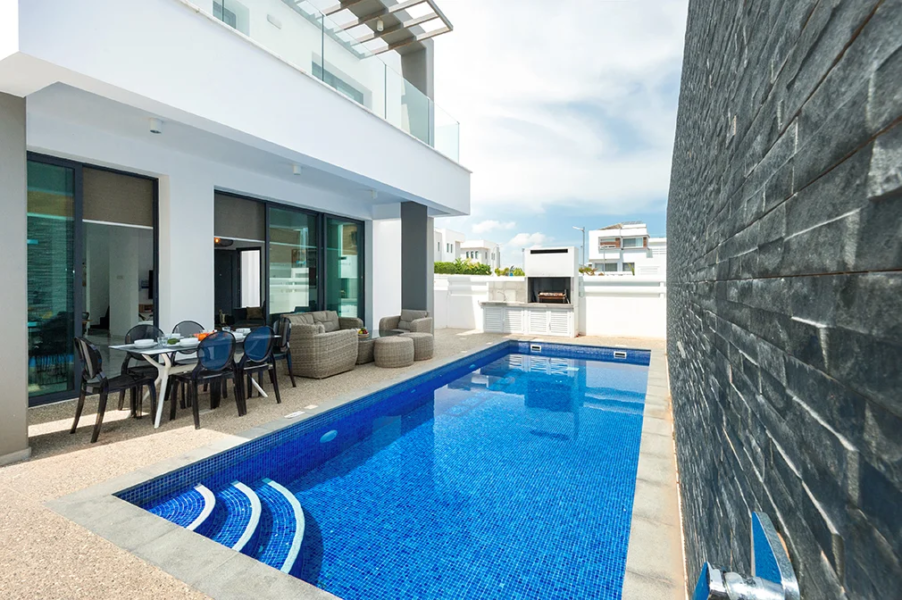 • Ideally located, less than 200 metres from the euphoria-inducing sands of gorgeous Kalamies Beach, this contemporary brand new three bedroom villa offers space, privacy and easy access to all amenities.