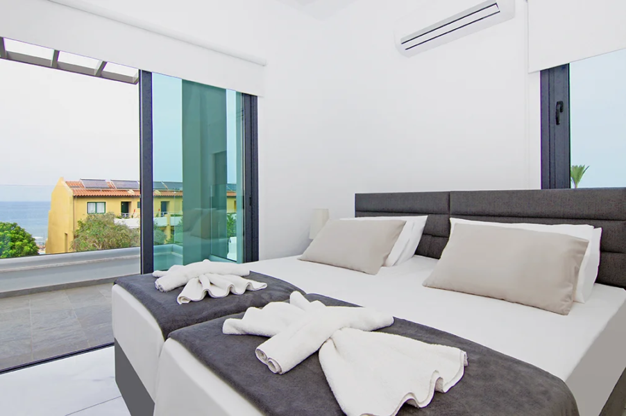 - Ideally located, less than 200 metres from the euphoria-inducing sands of gorgeous Kalamies Beach, this contemporary brand new three bedroom villa offers space, privacy and easy access to all amenities.